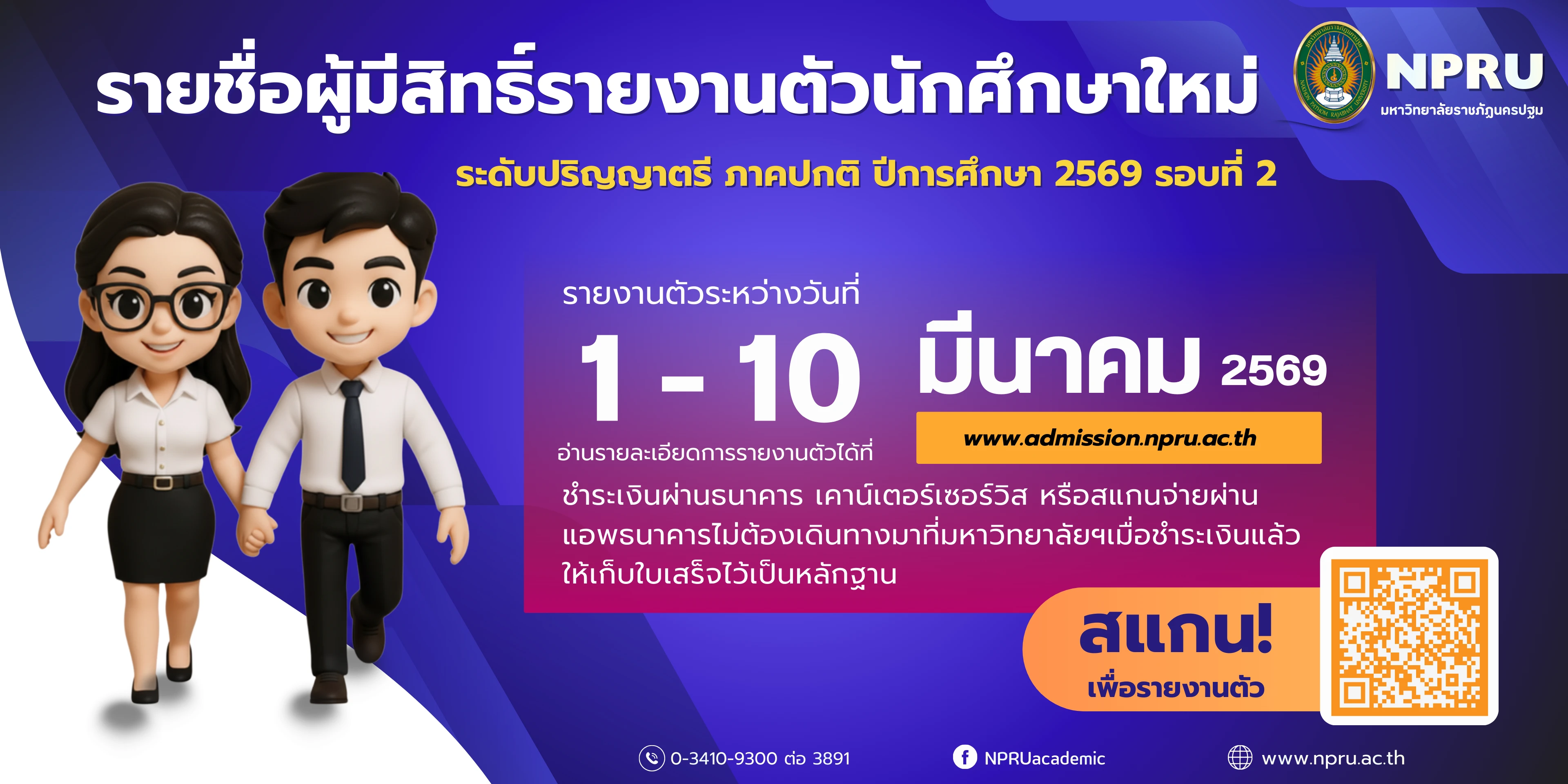 ประกาศรายชื่อผู้ผ่านการคัดเลือกมีสิทธิ์รายงานตัว ภาคปกติ ปีการศึกษา 2569 รอบที่ 2