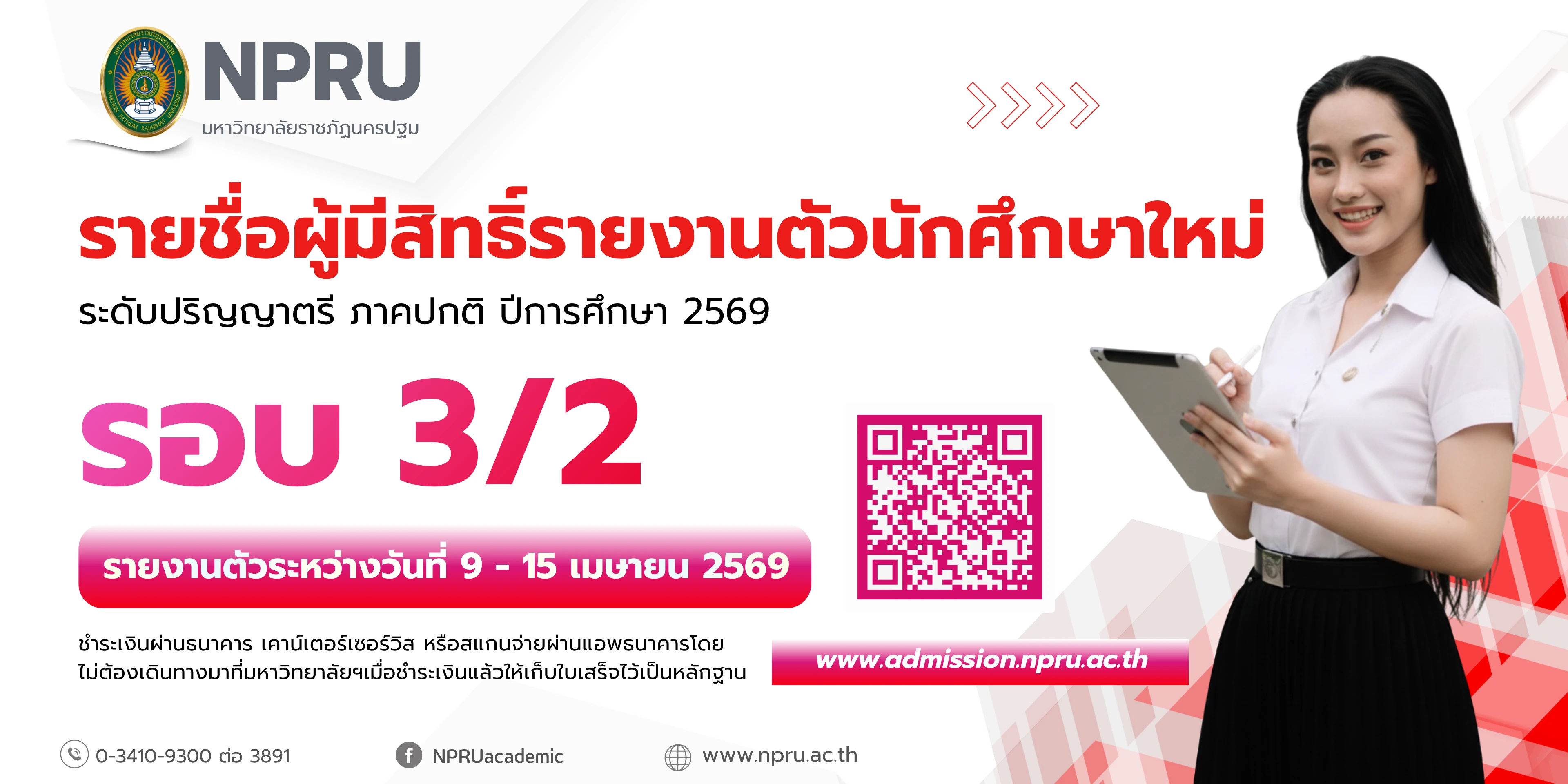 ประกาศรายชื่อผู้ผ่านการคัดเลือกมีสิทธิ์รายงานตัว ภาคปกติ ปีการศึกษา 2569 รอบที่ 3/2