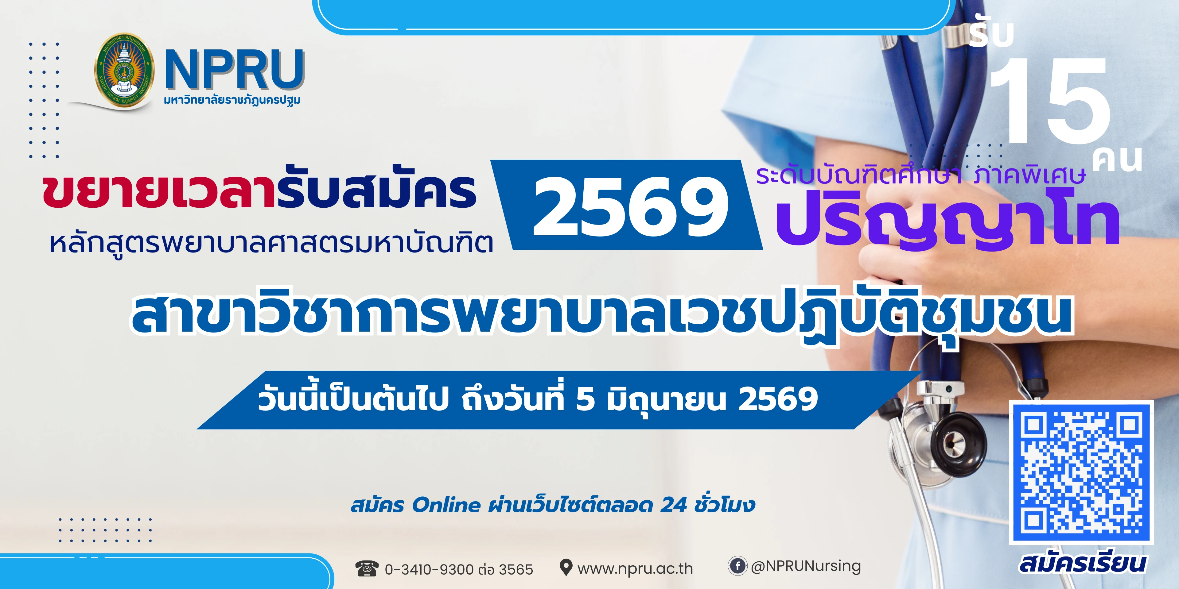 ขยายเวลารับสมัครนักศึกษาระดับบัณฑิตศึกษา หลักสูตรพยาบาลศาสตรมหาบัณฑิต สาขาการพยาบาลเวชปฏิบัติชุมชน ประจำภาคเรียนที่ 1/2569