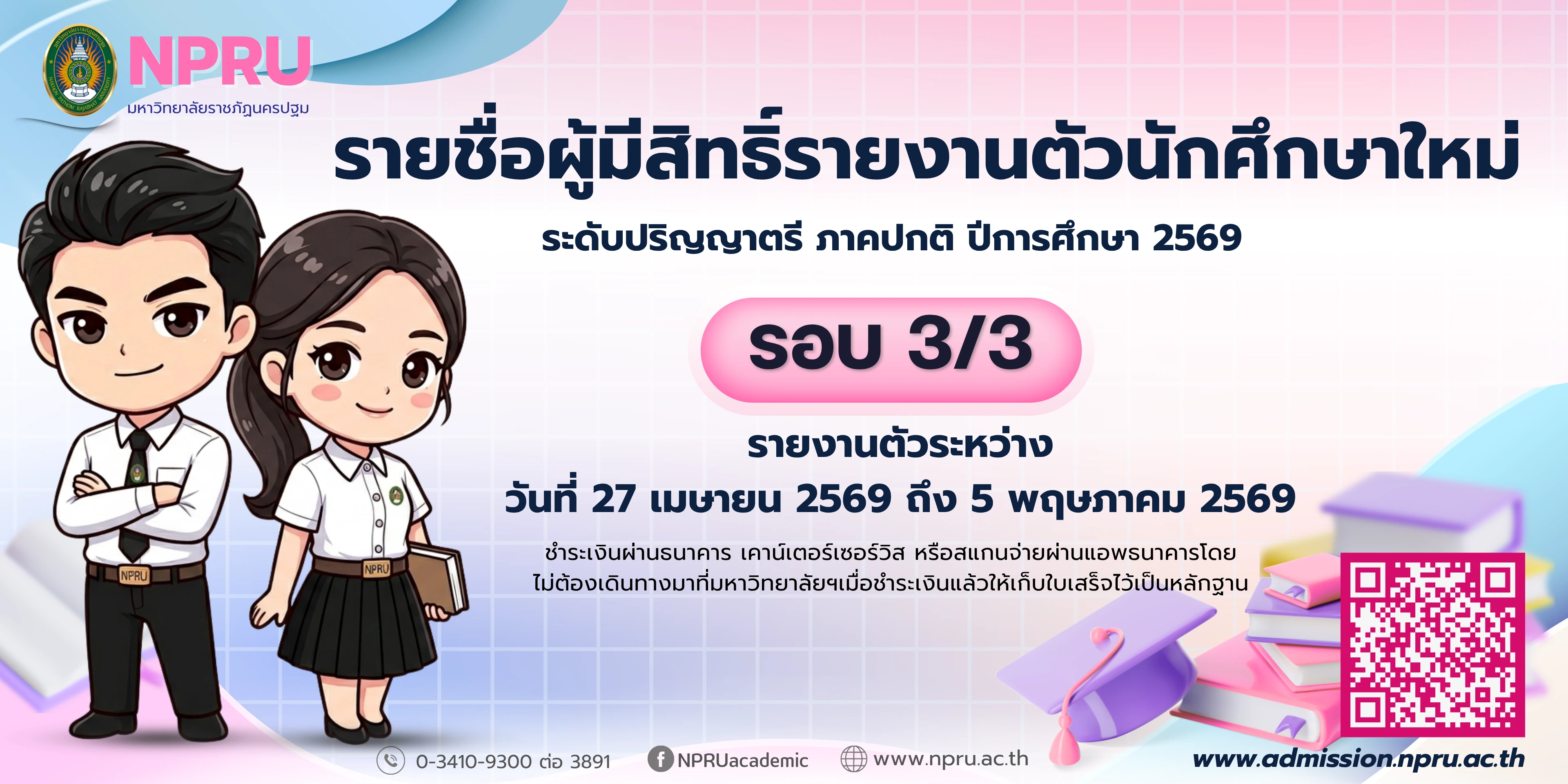 ประกาศรายชื่อผู้ผ่านการคัดเลือกมีสิทธิ์รายงานตัว ภาคปกติ ปีการศึกษา 2569 รอบที่ 3/3